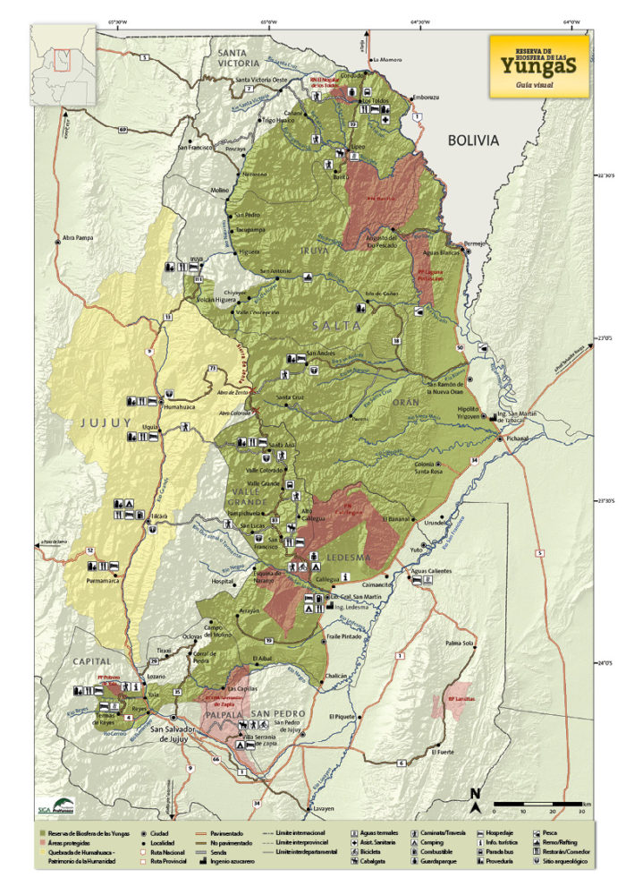 A fin de preservar la región de las Yungas, definida como una de las áreas de biodiversidad sobresaliente de la Argentina, se declaró la Reserva de Biosfera de las Yungas (RBYungas) en el marco del Programa del Hombre y la Biosfera (MAB – Man and Biosphere) de la UNESCO en diciembre de 2002. La RBYungas está ubicada en el sector norte de las Yungas en Argentina y está compartida por Jujuy (30%) y Salta (70%).