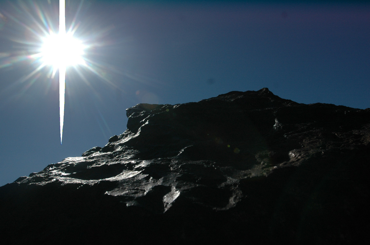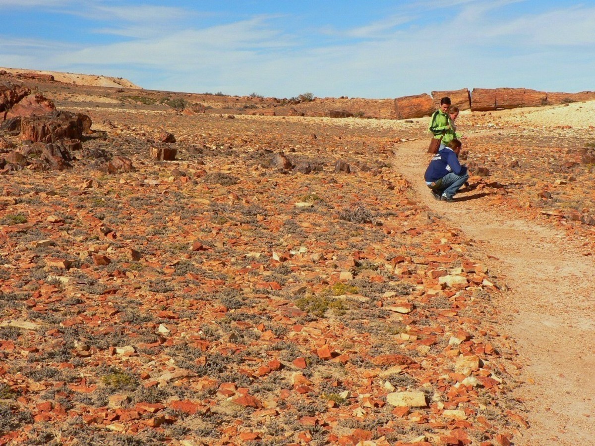 Jaramillo y un sendero tapizado de astillas de piedra, Santa Cruz.