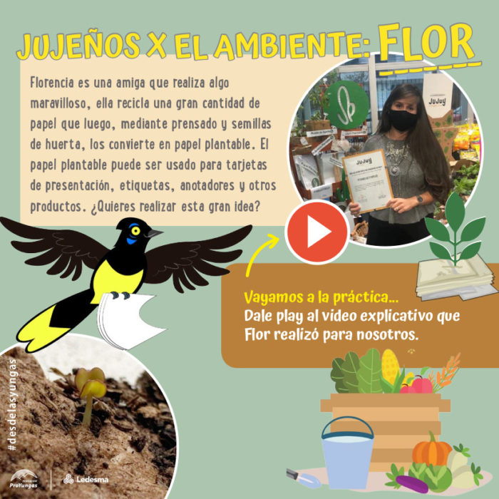 Mediante videos, fotografías, actividades para pensar y juegos aprenderemos todo sobre los residuos orgánicos, sus posibles usos, beneficios y también el impacto ambiental que generan al no ser tratados. También compartiremos cómo realizar papel plantable junto a Florencia Paz de FP papeles y semillas, emprendimiento reconocido con el sello Jujuy Energía Viva.