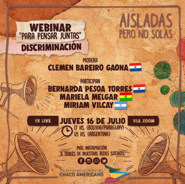 Como parte de su campaña “Aisladas, pero no solas”, el Colectivo de Mujeres del Chaco Americano realizará una serie de conversaciones abiertas a todo el público, con diferentes mujeres referentes de este colectivo, así como de otras organizaciones, universidades y medios de comunicación.
