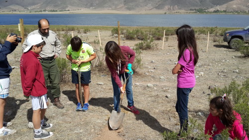Un grupo de jóvenes también pudo participar de plantación de estacas de sauces criollo y mantenimiento en dos de las *parcelas de clausura (una superficie cerrada cuya función es percibir la evolución de la vegetación en un lapso de tiempo sin intervención del ganado) situadas en La Angostura.