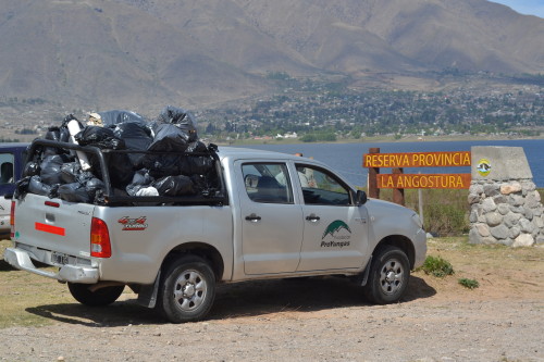 El segundo día fue la Reserva Provincial La Angostura, en Tafí del Valle, la anfitriona de la nueva jornada. En esta ocasión la actividad tuvo inicio con una breve charla a los alumnos que luego visitaron la reserva. Acompañados por un sol radiante, los chicos realizaron la limpieza del perilago, liberando el área de plásticos, vidrios, latas, y otros desechos que la desidia de algunos visitantes o el viento arrojan al interior de la Reserva. El arduo trabajo permitió llenar cuatro camionetas con basura, que luego fue trasladada a la planta de separación y tratamiento de la localidad de El Mollar.