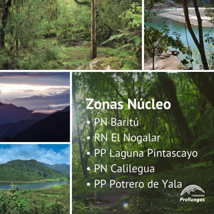 La RBYungas representa un espacio de 1.3 millones de hectáreas que incluye Pastizales de Neblina en las áreas cumbrales, Bosques Montanos y Selvas Montanas en las laderas hiperhúmedas y Selvas Pedemontanas en las partes más bajas y secas asociadas al pedemonte. En la RBYungas además, coexisten grandes empresas agrícolas y de hidrocarburos con empresas forestales medianas y chicas, pequeños y medianos productores agropecuarios, comunidades locales (campesinas y aborígenes) y organizaciones no gubernamentales. El Estado está representado por los gobiernos de las dos provincias y de los 23 municipios que componen la RBYungas, con áreas protegidas de carácter provincial, así como la Administración de Parques Nacionales, a cargo de tres áreas protegidas como el Parque Nacional Calilegua, Parque Nacional Baritú y Reserva Nacional el Nogalar de los Toldos.