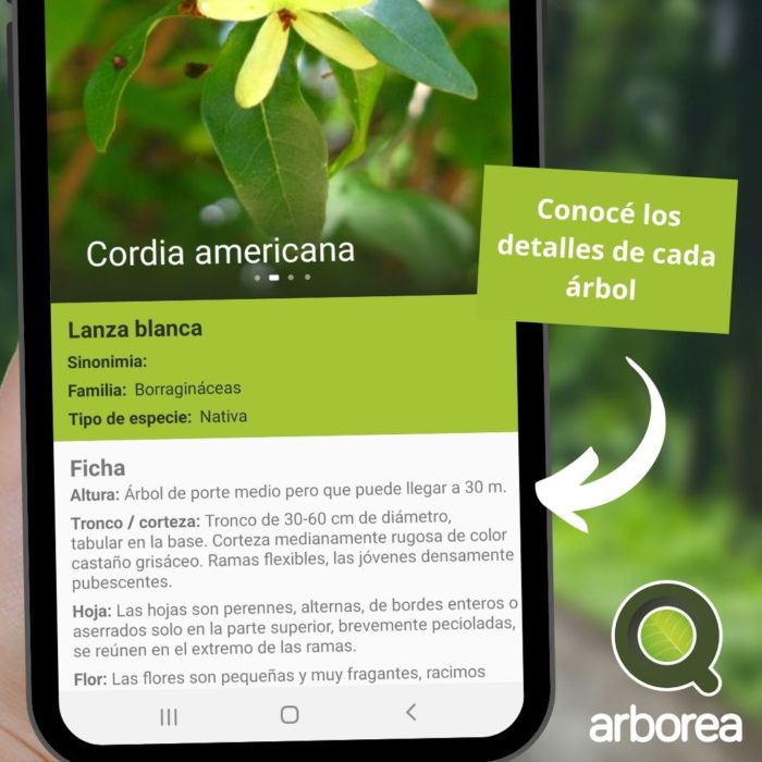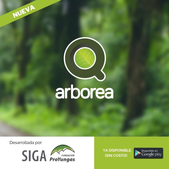 ARBOREA es una aplicación para celular desarrollada por el SIGA (Sistema de Información Geográfica Ambiental) de la Fundación ProYungas. Permite la búsqueda de 275 especies de árboles, incluyendo también algunas palmeras y cactus. Cada especie está asociada a una ficha descriptiva que contiene información botánica, fenológica, estado de conservación, usos conocidos y distribución.