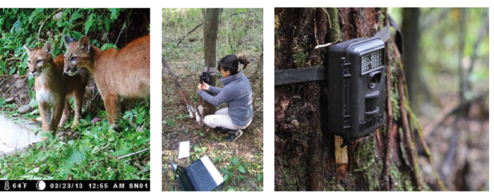 Uno de los grupos que monitoreamos comúnmente son los mamíferos, utilizando trampas cámara. Estas cuentan con un equipo fotográfico que se activa automáticamente cuando detecta el calor o movimiento de un animal. Las cámaras son instaladas por técnicos especialistas en el campo y quedan activas durante varios días (por lo general más de 30), registrando la presencia de especies que de otra forma sería muy difícil de captar.