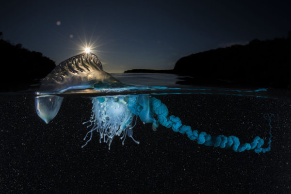 Una carabela portuguesa se acerca a la playa en una mañana de verano; miles de estas medusas se lavan en la costa oriental de Australia cada año.