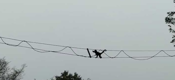 Grabaron a monos caí usando el pasafauna aéreo en el Parque Nacional Iguazú