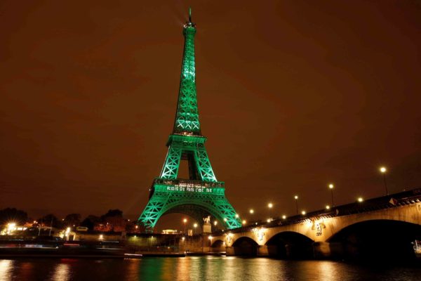 La Torre Eiffel se iluminó de verde para celebrar la entrada en vigor del acuerdo sobre el clima