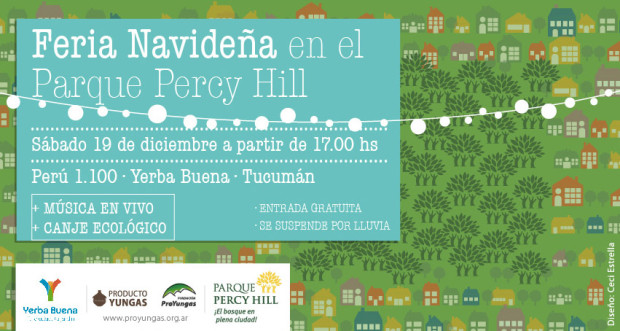 Este sábado 19 a partir de las 17hs los esperamos en el Parque Percy Hill (Perú 1.180) de Yerba Buena (Tucumán) en una nueva edición de la Feria Navideña de Artesanos junto al Canje Ecológico para disfrutar una hermosa tarde en familia dentro de este maravilloso relicto de selva pedemontana.