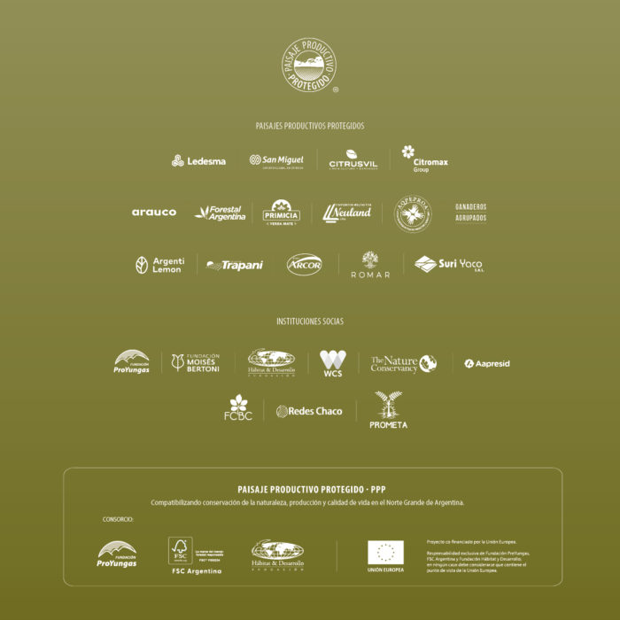 En septiembre del 2021 se dio inicio al proyecto “Paisaje Productivo Protegido: compatibilizando conservación de la naturaleza, producción y calidad de vida en el Norte Grande de Argentina”, co-financiado por la Unión Europea, con el objetivo promover la implementación de estrategias productivas que promuevan una mejora en la protección de la naturaleza y en las condiciones de vida de las poblaciones del Norte Grande de Argentina. El proyecto tiene una duración de 3 años y es coordinado por Fundación ProYungas e implementado junto con los socios FSC Argentina y Hábitat y Desarrollo.