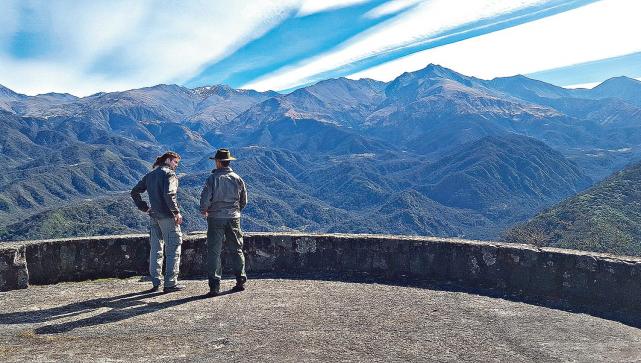 Gerardo Carreras, jefe de Guardaparques de Los Alisos, supervisa el relevamiento en La Banderita, a 48 kilómetros de Concepción. El mirador de forma circular (ruta nacional 65) está a 1.846 metros de altitud, frente a las cumbres del Clavillo.