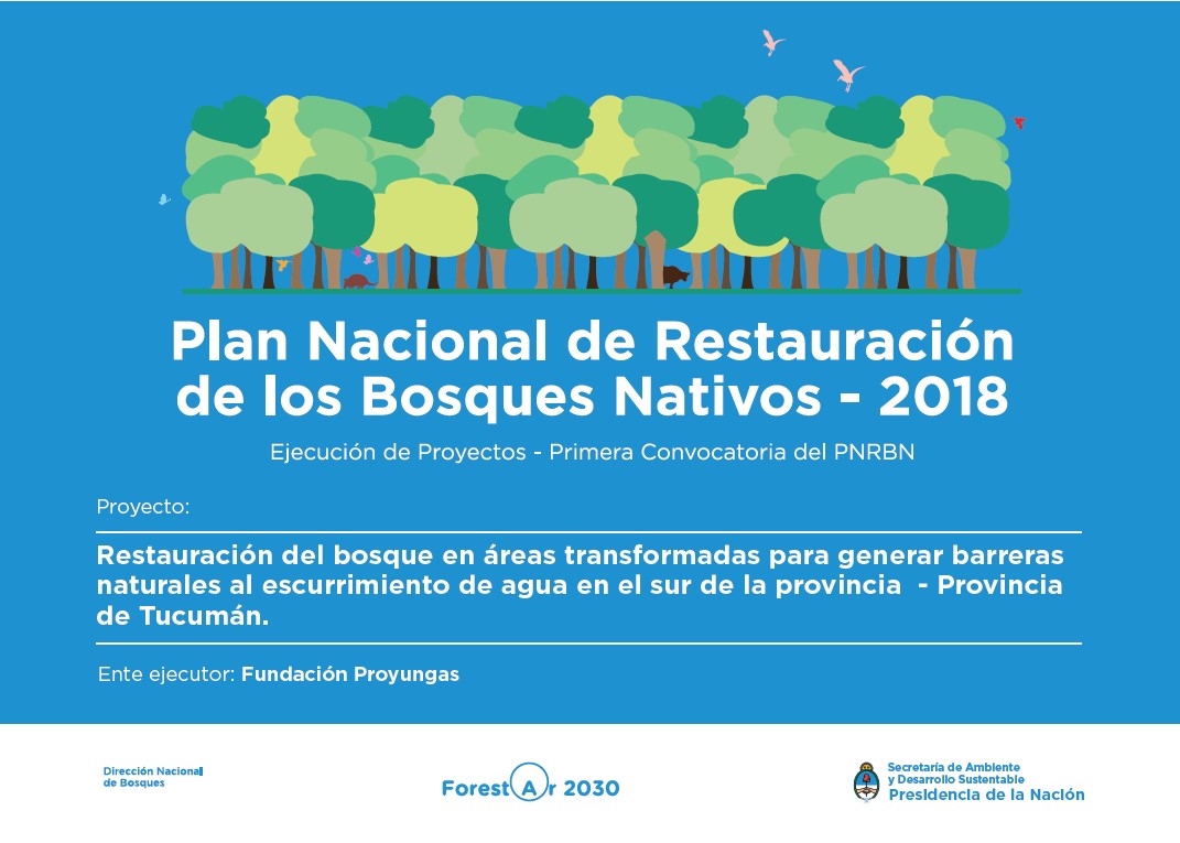 Durante el último semestre de 2018 la Fundación ProYungas llevó a cabo un proyecto perteneciente al Plan Nacional de Restauración de Bosques Nativos con el objetivo de implementar acciones de restauración en áreas de la cuenca del río Marapa, tendientes a recuperar la funcionalidad hídrica y ambiental de las mismas. Con este trabajo se busca desarrollar acciones piloto que permitan establecer un modelo de restauración ambiental como estrategia para contrarrestar la deforestación de la cuenca, procurando mejorar la condición de la cobertura forestal. El objetivo a largo plazo es contribuir a la restauración del ecosistema promoviendo la recuperación integral, en cuanto a su estructura vegetal, composición de especies, funcionalidad y autosuficiencia, hasta llevarlo a condiciones semejantes a las presentadas originalmente.
