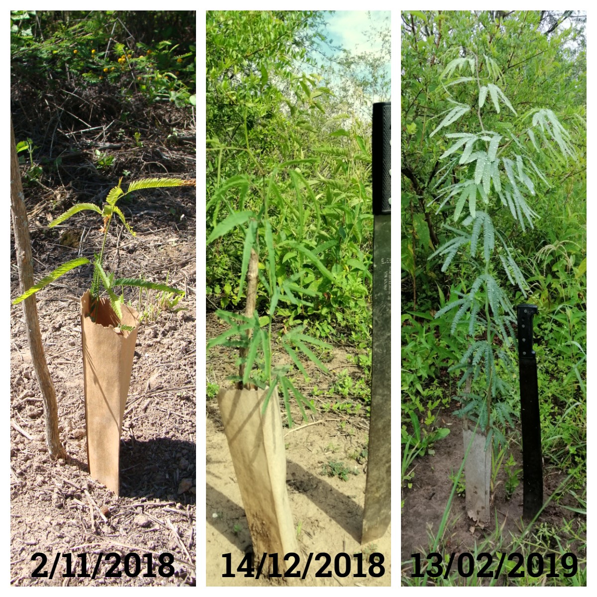 Todos los plantines se incorporaron satisfactoriamente a la matriz natural, teniendo muy pocas fallas que en la actualidad se están reponiendo. En la siguiente imagen se puede apreciar el crecimiento de los plantines a través del corto tiempo que llevan en el campo.