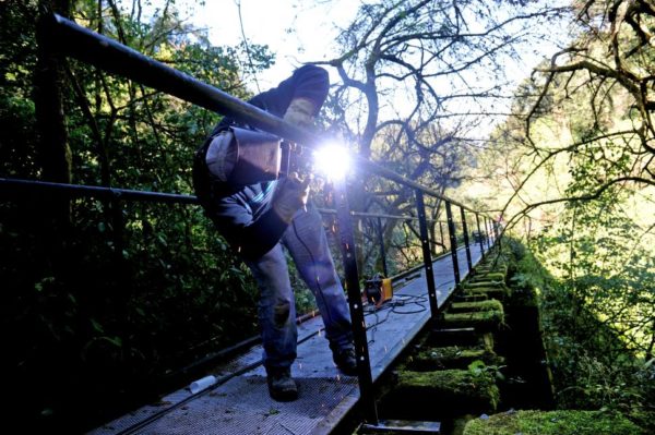Pablo Desjardins, supervisor de la obra, asegura que la decisión de construir la base metálica reforzará el paso peatonal en el puente. “Si lo hacíamos de madera, la humedad podía dejar muy resbaladiza la base; en cambio ahora -resalta- quedará más firme, porque todo es de hierro”.