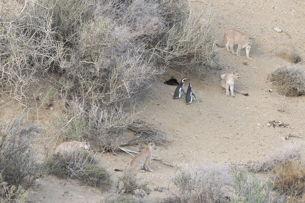 Aparentemente la reducción de la presión de caza por parte de pumas, posibilitó la expansión de grandes colonias de pingüinos en la costa (Camarones, Punta Tombo, Cabo Vírgenes) que sin el control poblacional a través de la predación, superaron los cientos de miles e incluso los millones de ejemplares. Es llamativo pensar que condiciones que vemos como “naturales” son reflejo directo de la intervención humana en territorios silvestres.
