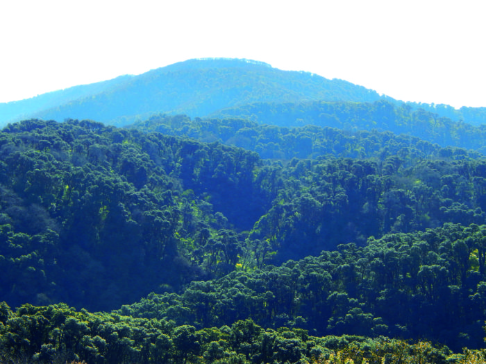 Las laderas de la sierra de San Javier son un mosaico de miles de hectáreas de bosques, arbustales y pastizales. En esos bosques dominan árboles enormes, pero decenas de enredaderas, suben y les pelean por llegar al sol. Al mismo tiempo innumerables claveles del aire y orquídeas se encaraman en las ramas y aprovechan la niebla de las yungas para vivir sin necesidad de suelo. En la oscuridad y fresco de la selva y las quebradas prosperan helechos y musgos. Decenas de hongos aprovechan el alimento que les ofrecen las ramas y troncos caídos. Entre este montón de vida quieta, verde y marrón, se mueven con cantos y ruidos cientos de especies de pájaros y muchas más especies de insectos y arañas. En la oscuridad de la noche especialmente, en la sierra se mueven chanchos del monte, corzuelas, ocelotes y varios otros.